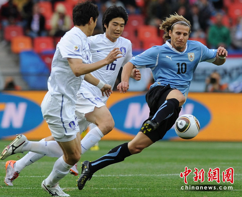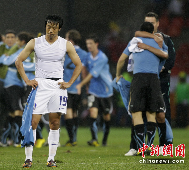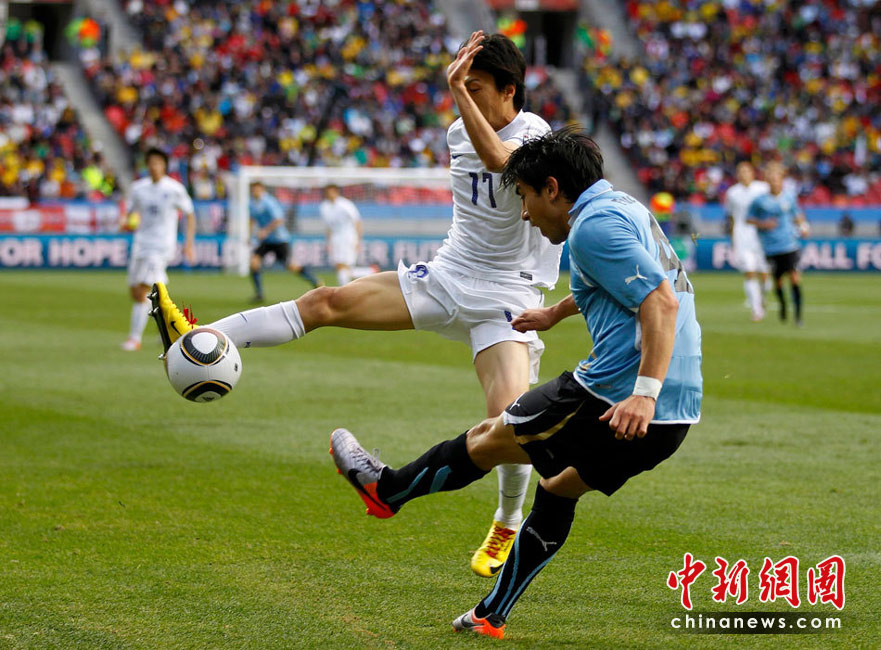 在26日晚進行的一場世界杯1/8決賽中,韓國隊在伊麗莎白港的納爾遜·曼德拉球場迎戰(zhàn)墨西哥。烏拉圭隊憑借蘇亞雷斯在上下半場的兩粒入球,以2-1擊敗韓國隊,率先晉級八強。