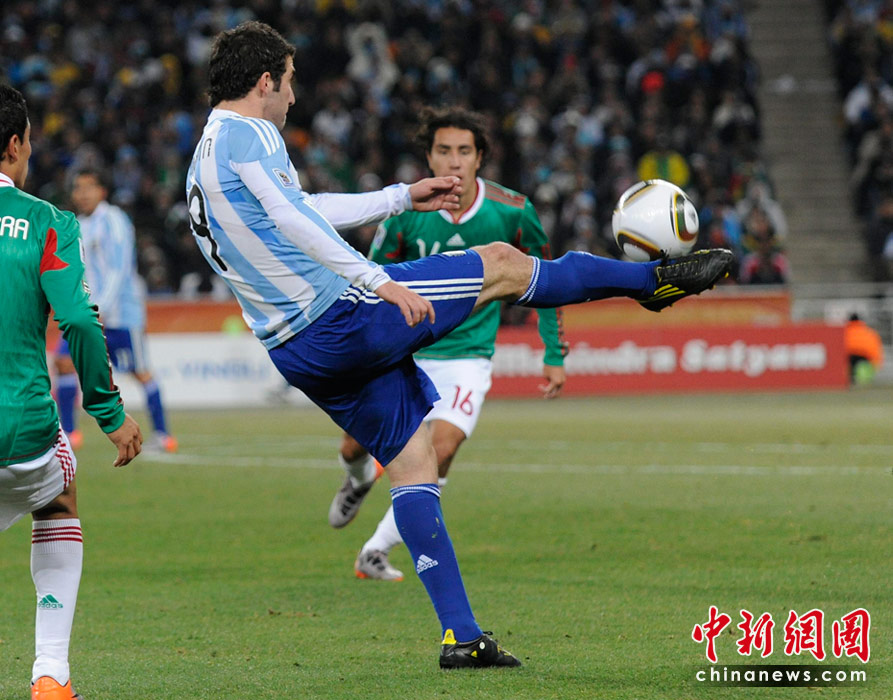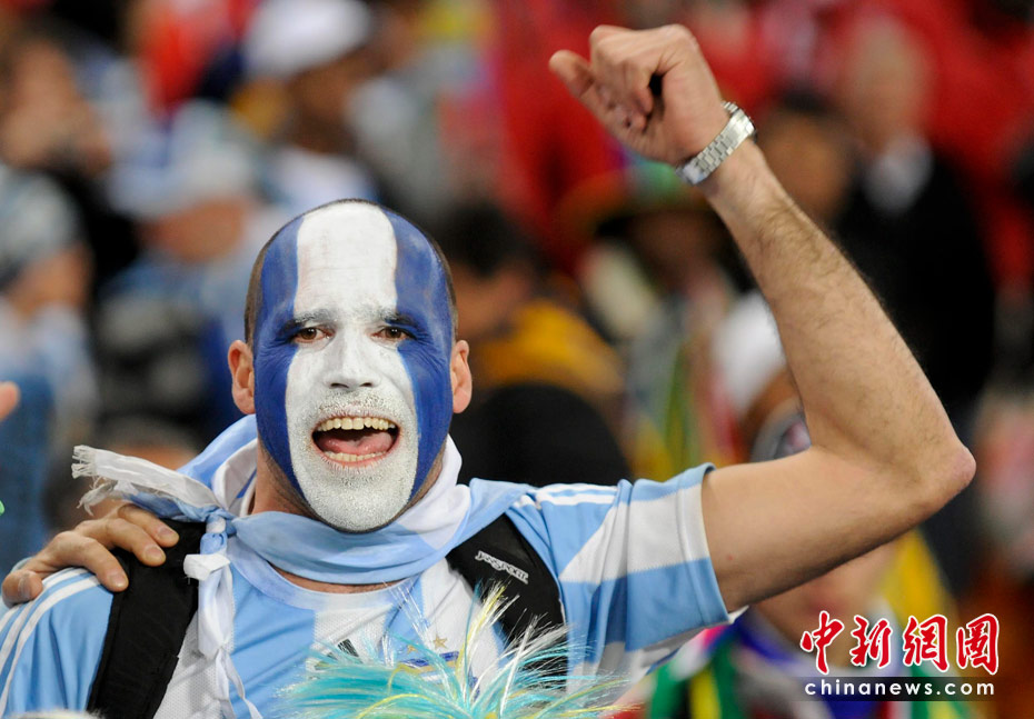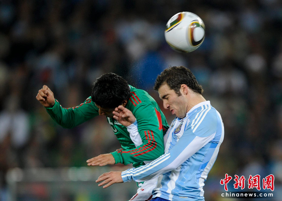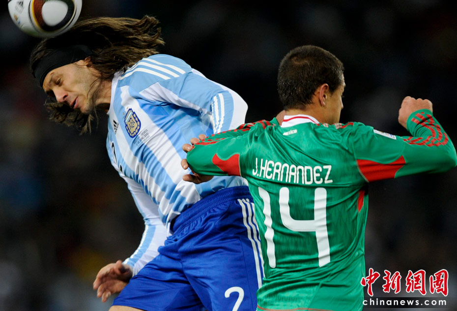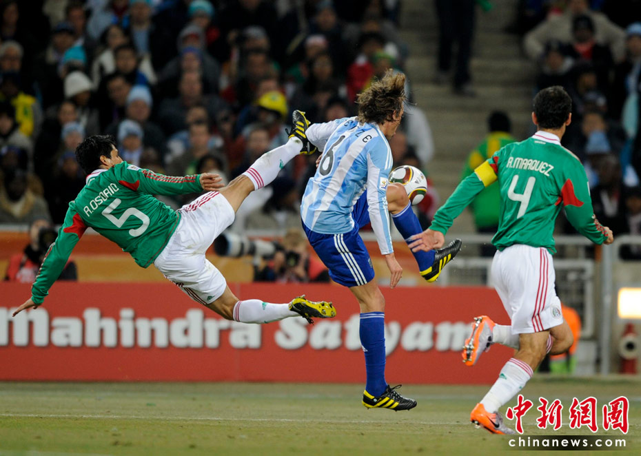 北京時間6月28日凌晨2:30,南非世界杯1/8決賽再賽一場,阿根廷隊(duì)在約翰內(nèi)斯堡的足球城球場迎來了墨西哥隊(duì)。憑借特維斯一個明顯越位進(jìn)球首開紀(jì)錄,隨后伊瓜因和特維斯各進(jìn)一球,以3-1擊敗墨西哥,晉級八強(qiáng)。 中新社記者 廖攀 攝