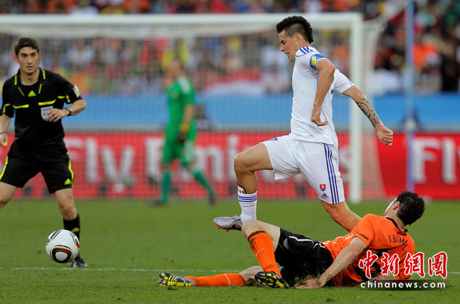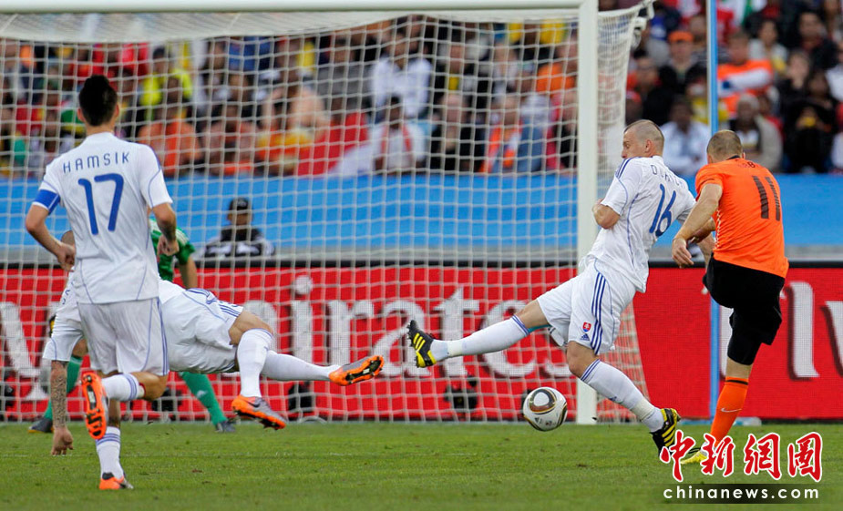 28日晚,南非世界杯1/8決賽第五場(chǎng)比賽在德班球場(chǎng)拉開(kāi)戰(zhàn)幕,由E組頭名荷蘭隊(duì)迎戰(zhàn)F2第二名斯洛伐克。最終,憑借羅本和斯內(nèi)德在上下半場(chǎng)的進(jìn)球,荷蘭隊(duì)以2-1淘汰斯洛伐克,闖入八強(qiáng)。