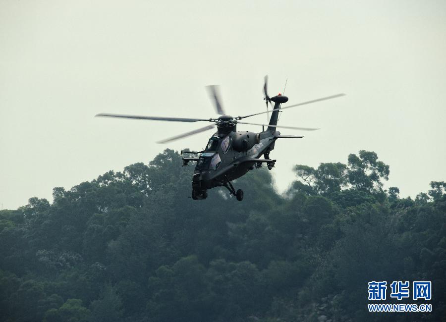 2012年11月11日,國(guó)產(chǎn)武直10武裝直升機(jī)在珠海三灶機(jī)場(chǎng)進(jìn)行飛行訓(xùn)練。當(dāng)日,我國(guó)自主研制生產(chǎn)的武直10武裝直升機(jī)在珠海三灶機(jī)場(chǎng)進(jìn)行了約20分鐘的適應(yīng)性飛行訓(xùn)練,做出倒飛、萊維斯曼機(jī)動(dòng)、高速大角度俯沖、低空小半徑盤旋等動(dòng)作,展現(xiàn)出其優(yōu)異性能,引來(lái)航展現(xiàn)場(chǎng)觀眾頻頻喝彩。楊光 攝 圖片來(lái)源:新華網(wǎng)