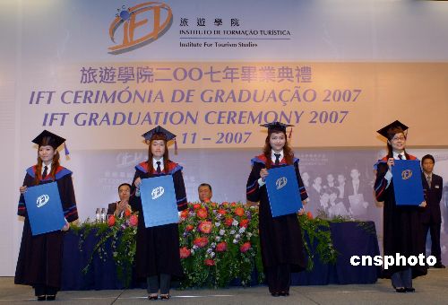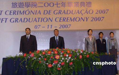 十一月七日,澳門特首何厚鏵、社會(huì)文化司司長崔世安在旅游塔主禮澳門旅游學(xué)院2007年畢業(yè)典禮。中新社發(fā) 史利 攝