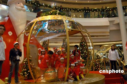 11月27日,香港一商場以“圣誕球的主角”為主題,舉行圣誕裝飾亮燈儀式,小朋友置身“圣誕球”感受另一番的歡和樂。中新社發(fā) 譚達明 攝