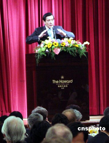 11月29日,馬英九應(yīng)美國、歐洲等四大在臺商會之邀在臺北發(fā)表專題演講,提出兩岸直航等經(jīng)濟(jì)議題,吸引外商。中新社發(fā) 黃少華 攝