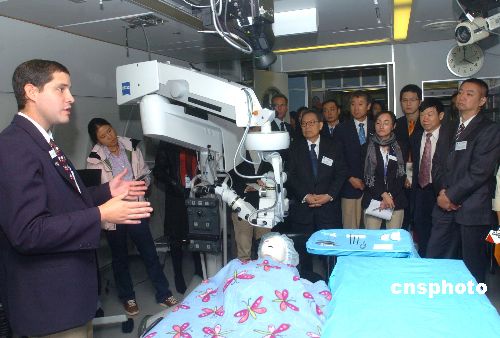 十二月五日,澳門特首何厚鏵(左四)在澳門國際機場親自主禮奧比斯眼科飛機醫(yī)院"光明之行"活動開幕典禮。肩負全球救盲使命的奧比斯眼科飛機醫(yī)院來澳,將與澳門國際機場合作開展為期三天的"光明之行"參觀活動及慈善拉飛機活動,旨在鼓勵市民關(guān)注全球失問題,喚起愛心,救助盲人。 中新社發(fā) 史利 攝