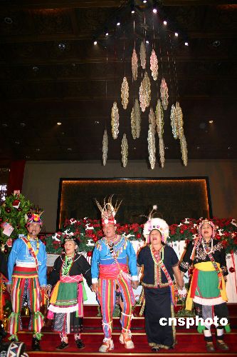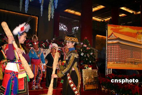 十二月五日下午,古色古香的臺北圓山飯店舉行圣誕點(diǎn)燈儀式,并請來原住民作為大地的代言人,從大地采光,點(diǎn)燃圣誕之燈。據(jù)了解,今年圓山飯店的圣誕樹造型的燈使用環(huán)保材料,圣誕之后,仍可用作日常的照明。中新社發(fā) 陳國華 攝