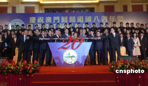 十二月六日晚,澳門晉江同鄉(xiāng)會(huì)在威尼斯人宴會(huì)廳舉行聯(lián)合晚宴,慶祝澳門回歸八周年暨澳門晉江同鄉(xiāng)會(huì)成立二十周年,四千多位海內(nèi)外各界人士出席。中新社發(fā) 史利 攝