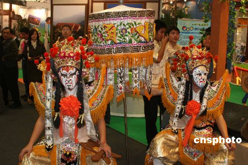 十二月十七日傍晚,“臺北國際旅展”閉幕,四天共吸引十九萬三千九百多人次入場,創(chuàng)下二十一年來新高。圖為一個(gè)攤位請來“八家將”助陣。中新社發(fā) 董會峰 攝
