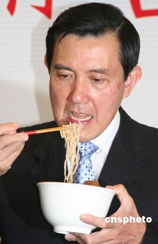 圖:馬英九吃豬腳面線 象征去除厄運