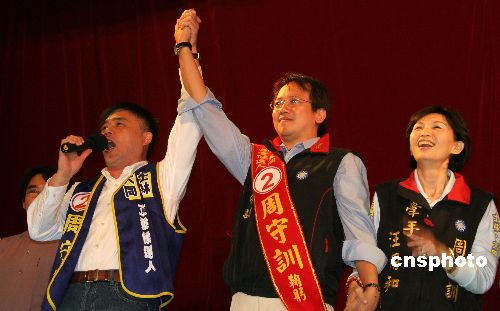 發(fā)表評論 一月十日晚,臺北市市長郝龍斌參加“立委”候選人周守訓(xùn)拉票造勢晚會,為周參選站臺、打氣。臺灣“立委”選舉在即,選戰(zhàn)已進(jìn)入白熱化。中新社發(fā) 孫自法 攝