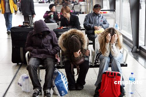 一月二十七日,本應(yīng)二十六日下午三時(shí)搭乘T98次京九直通車返京的旅客滯留紅磡車站。由于天氣原因,T98次京九直通車二十七日下午二時(shí)后才駛離香港紅磡車站,比原定日期延誤一天。中新社發(fā) 武仲林 攝