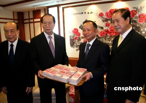 發(fā)表評論 二月四日,曼谷,泰國中華總商會向中國雪災(zāi)災(zāi)區(qū)人民捐款現(xiàn)金五十萬元人民幣。中國部分地區(qū)近來遭到嚴重雪災(zāi)的消息牽動無數(shù)泰國華僑華人的心,泰國多個華人社團、公司及個人,四日紛紛前往中國駐泰國大使館向災(zāi)區(qū)捐款救災(zāi)。泰國正大集團、中華總商會、九屬會館、泰國進出口商會、泰國各姓氏宗親總會聯(lián)合會、泰國報德善堂等華人公司和社團的領(lǐng)導(dǎo)人,向中國駐泰大使張九桓(右二)轉(zhuǎn)交總計二百六十萬元人民幣和二百萬泰銖捐款。中新社發(fā) 顧時宏 攝