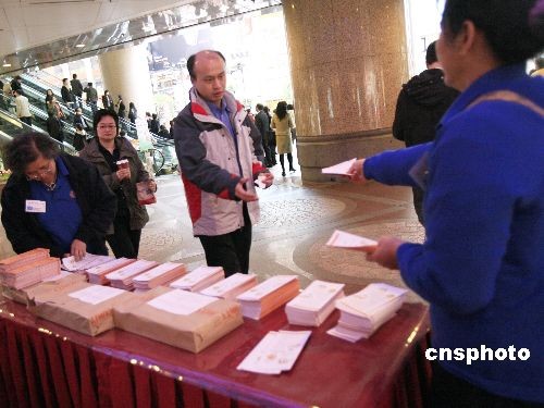 二月二十七日,香港財(cái)政司司長曾俊華向立法會(huì)提交二零零八至零九年度財(cái)政預(yù)算案,公布政府綜合盈余達(dá)一千一百五十六億元,創(chuàng)歷來新高,并推出多項(xiàng)減稅和惠及社會(huì)的措施。圖為有關(guān)組織街頭派發(fā)財(cái)政預(yù)算案摘要小冊(cè)子給市民。中新社發(fā) 王麗南 攝