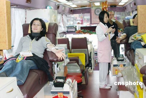 2月28日,臺灣“二二八事件”發(fā)生六十一周年,島內(nèi)舉辦多項(xiàng)紀(jì)念活動,中國國民黨和新黨分別舉辦捐血活動,民眾積極響應(yīng)捐血。圖為民眾在新黨舉辦活動的采血車上捐血情形。據(jù)悉,這是新黨自2004年以來第5度發(fā)起舉辦“228捐血紀(jì)念日”,前四年已募得2300萬CC血液。新黨成員表示,活動獲得的響應(yīng)一年比一年熱烈。中新社發(fā) 黃少華 攝