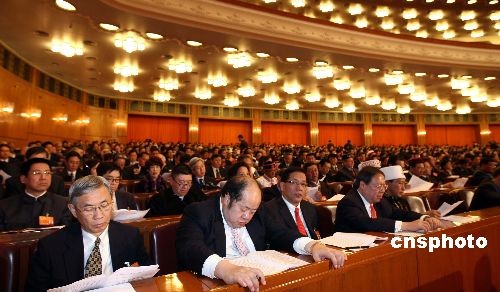發(fā)表評論 3月3日下午,全國政協(xié)十一屆一次會議在北京人民大會堂開幕,圖為來自香港特區(qū)的委員在開幕會上。中新社發(fā) 盛佳鵬 攝