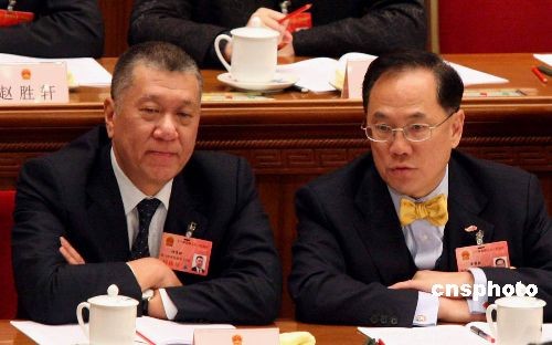 3月5日上午,十一屆全國人大一次會議在北京開幕。香港特首曾蔭權(quán)和澳門特首何厚鏵在主席臺上。中新社發(fā) 張宇 攝