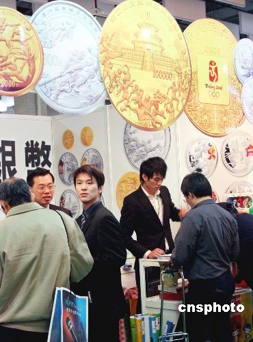 3月7日,為期5天的第21屆亞洲國際郵展在臺北開幕,展出競賽類、非競賽類及榮譽(yù)類的展品超過1000框。其中上海版飛雁加印小字郵票,紅印花加字郵票和大龍試印票等價值新臺幣上千萬元以上的珍稀郵票,最引人注目。圖為一家臺灣公司設(shè)攤展出北京奧運紀(jì)念金銀幣,并在現(xiàn)場向民眾贈送北京奧運吉祥物福娃宣傳海報。中新社發(fā) 黃少華 攝