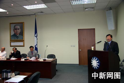 臺灣地區(qū)當選領導人馬英九14日在面對港澳媒體的記者會上證實,將由東吳大學校長劉兆玄出任“行政院長”。劉兆玄1943年5月出生,湖南省衡陽縣人。1965年臺灣大學化學系畢業(yè),曾任臺灣當局“交通部”部長、“行政院副院長”。2004年出任東吳大學校長,現(xiàn)任國民黨中常委。圖為2007年6月,劉兆玄在國民黨中常會上就經(jīng)貿(mào)問題作演講。中新社記者 耿軍 攝