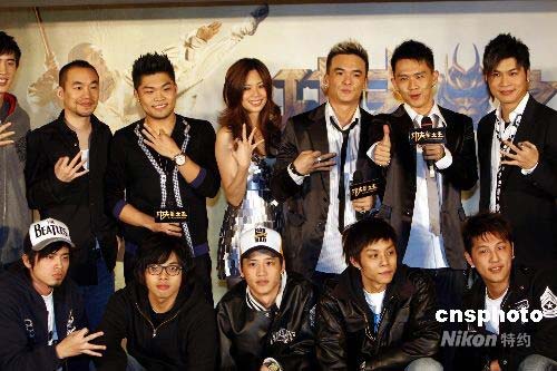 4月24日,《功夫之王》在臺灣首映,兩位男主角成龍、李連杰未能到場參加,由主題歌曲《預(yù)感》的制作人李玖哲和片尾曲《HERO》演唱組合“三角COOL”成員一起為臺北首映式捧場。中新社發(fā) 杜洋 攝