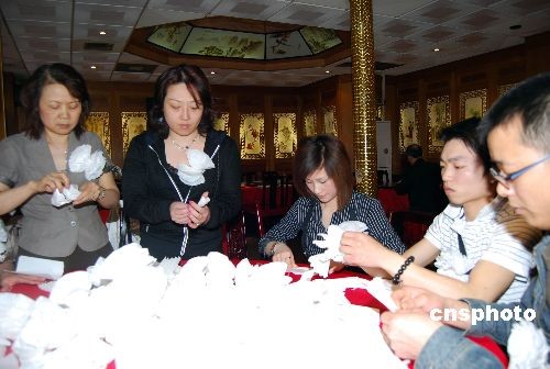 在中國“全國哀悼日”期間,法國華僑華人婦女聯(lián)合會的一些會員自發(fā)組織起來,折疊大量紙花,供旅法僑胞、留學(xué)生等到中國駐法使館悼念汶川地震遇難同胞。
