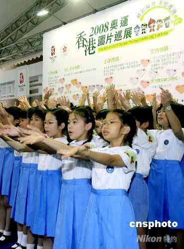 五月二十五日,“萬眾一心 眾志成城 為四川災(zāi)區(qū)人民獻(xiàn)愛心義演”在香港時(shí)代廣場(chǎng)舉行,香港數(shù)所學(xué)校和幼稚園的小朋友演唱“我愛中華”、“承諾”等歌曲為四川地震災(zāi)區(qū)人民加油。圖為學(xué)生演唱由劉德華專為這次地震作詞、黃家駒作曲的賑災(zāi)歌“承諾”。中新社發(fā) 王麗南 攝