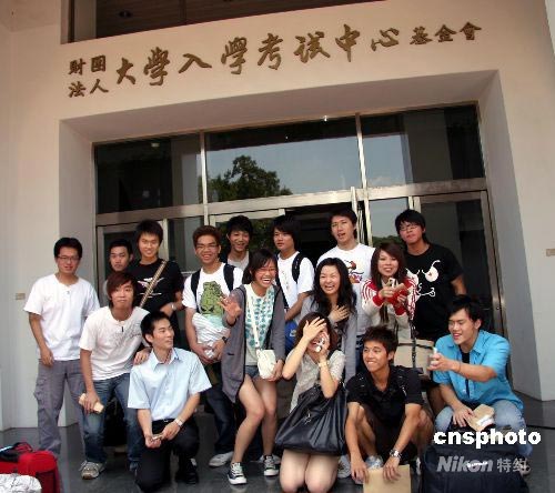 臺灣一年一度的“高考”——大學(xué)入學(xué)指定科目考試7月3日結(jié)束。今年共有九萬多考生報名參加,總數(shù)少于去年。今年大學(xué)入學(xué)考試中心共選擇了學(xué)生、老師等62人,提前13天進(jìn)入設(shè)在臺灣大學(xué)生命科學(xué)館地下的闈場。他們的任務(wù)包括審校試題、排版印刷等。為保密起見,62人自入闈后,一直與外界失去聯(lián)系?荚嚱Y(jié)束后,方才出闈,重獲自由。圖為出闈后在大考中心開心留影。中新社發(fā) 徐長安 攝