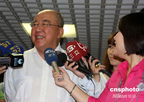7月26日,中國國民黨主席吳伯雄在臺北參與國民黨中常委選舉投票后接受記者采訪,笑著重申將應邀參加北京奧運會。中新社發(fā) 董會峰 攝
