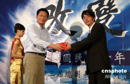 7月30日,國民黨史上最年輕中常委現(xiàn)年25歲的梁靧在臺北亮相。梁靧是臺灣政治大學(xué)哲學(xué)研究所一年級學(xué)生,日前當選中國國民黨青年團總團長,成為國民黨有史以來最年輕的中常委。圖為當日梁靧(右)出席國民黨青年團總團長交接儀式,并出席國民黨中常會。中新社發(fā) 董會峰 攝