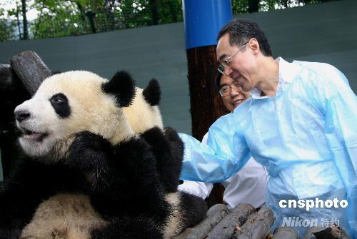 8月1日下午,香港政務(wù)司司長唐英年率考察團(tuán),前往中國第三大大熊貓圈養(yǎng)中心——中國保護(hù)大熊貓研究中心雅安碧峰峽基地實地考察。他重點考察了熊貓幼兒園、繁殖區(qū)等,詢問地震后基地熊貓的生活、健康、繁殖情況。中新社發(fā) 蔣艷英 攝