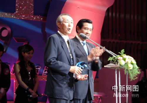 九月六日,臺灣“2008運動休閑產業(yè)展暨嘉年華”舉行“二00八年臺灣運動精英頒獎典禮”,馬英九出席,還向在北京奧運會跆拳道比賽中表現神勇的蘇麗文和獲得終身成就獎的蔡特龍(左)頒獎。曾福志 攝