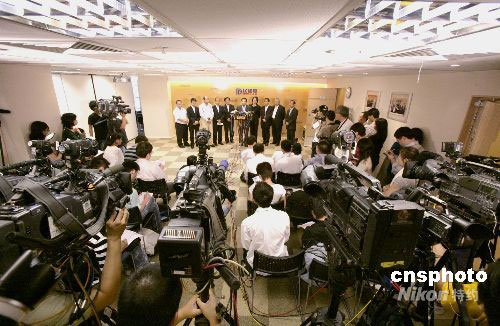 二〇〇八年香港立法會選舉已圓滿結(jié)束,民建聯(lián)在地區(qū)直選取得九席,功能界別四席,合共取得十三席,圖為民建聯(lián)當選人九月八日上午與媒體見面。中新社發(fā) 張勤 攝