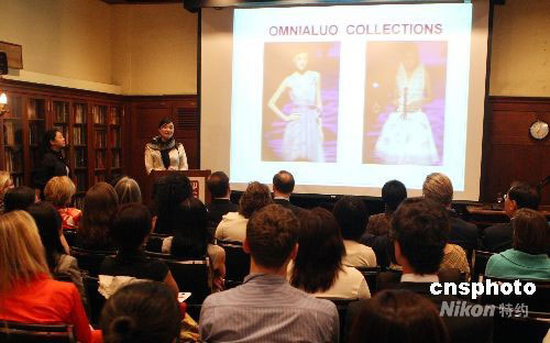 圖為中國設(shè)計(jì)師羅崢在紐約舉行時裝講座吸引眾多賓客。