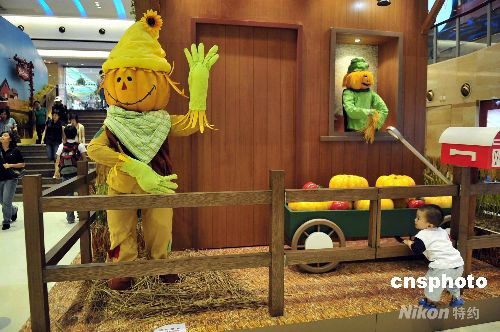 圖:香港商場(chǎng)布置鬼怪造型迎萬圣節(jié)
