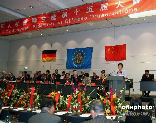 歐洲華僑華人社團(tuán)聯(lián)合會(huì)第十五屆大會(huì)9月10日在德國(guó)柏林開(kāi)幕,歐洲25個(gè)國(guó)家的華僑華人代表和中國(guó)有關(guān)部門負(fù)責(zé)人等500余人出席開(kāi)幕式。圖為中國(guó)國(guó)務(wù)院僑辦主任李海峰在開(kāi)幕式上致辭。中新社發(fā) 歐時(shí) 攝