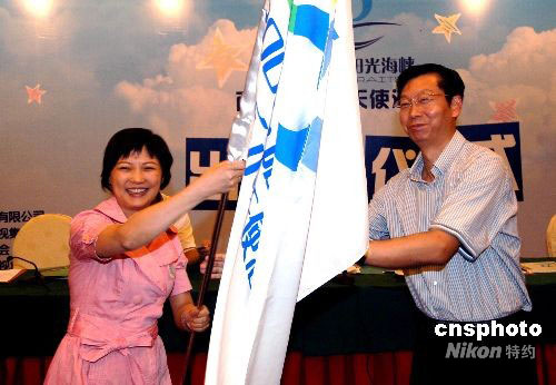 9月27日,“2008·陽光海峽”兩岸快樂小天使活動營出發(fā)儀式在福州舉行。活動營由福建省廣播影視集團和臺灣東森國際股份有限公司主辦,福建省廣播影視集團少兒頻道和臺灣東森文化基金會承辦。9月29日至10月5日,參加活動營的福建各地40多名小天使將帶著福建小朋友對臺灣小伙伴的祝福,踏上寶島臺灣。兩地孩子們將同游臺灣日月潭、阿里山,走訪臺北“故宮博物院”、紅毛城,了解臺灣與祖國大陸的歷史淵源等。中新社發(fā) 劉可耕 攝