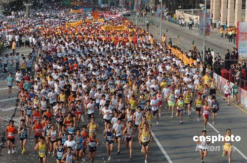十月一日上午八時許,澳門各界民眾參加的“國慶歡樂跑”在金蓮花廣場啟動!皻g樂跑”是澳門國慶日一項(xiàng)傳統(tǒng)民間體育活動。中新社發(fā) 畢永光 攝