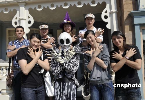 十月十日,中國(guó)女子排球隊(duì)成員到訪香港迪斯尼樂園。期間嘉賓把握機(jī)會(huì),跟喜愛的迪斯尼朋友合照。中新社發(fā) 鐘新 攝