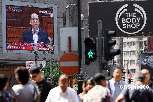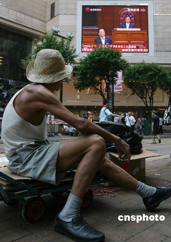 十月十五日,香港特別行政區(qū)行政長官曾蔭權(quán)在立法會發(fā)表二零零八至零九年施政報告,眾多香港市民在時代廣場通過大屏幕觀看直播。中新社發(fā) 武仲林 攝