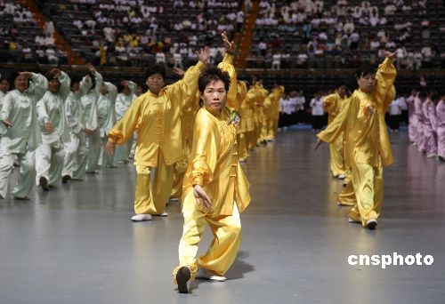 由臺灣太極拳總會、臺北市政府等共同主辦的太極拳錦標賽,十月十八日在臺北市體育館(臺北小巨蛋)開賽,來自臺灣部分縣市及臺灣以外地區(qū)的千余名太極拳愛好者參賽。中新社發(fā) 楊旭 攝
