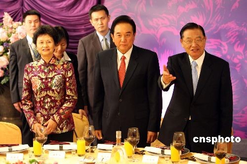 十月一月三日晚,臺(tái)灣;鶗(huì)董事長江丙坤在101大樓設(shè)宴,為中午抵臺(tái)的海協(xié)會(huì)會(huì)長陳云林洗塵。中新社發(fā) 洪少葵 攝