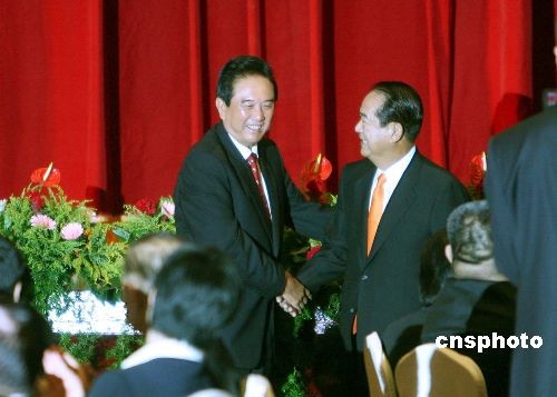 十一月五日中午,臺灣親民黨主席宋楚瑜在臺北圓山飯店宴請海協(xié)會會長陳云林一行。中新社發(fā) 洪少葵 攝