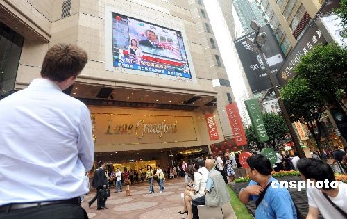 十一月五日,美國(guó)總統(tǒng)大選結(jié)果公布,民主黨的奧巴馬最終勝出,成為首位入主白宮的美國(guó)黑人總統(tǒng)。圖為在香港銅鑼灣時(shí)代廣場(chǎng)外大型電視屏下,市民及游客觀看相關(guān)報(bào)導(dǎo)。中新社發(fā) 鄧慶樂 攝