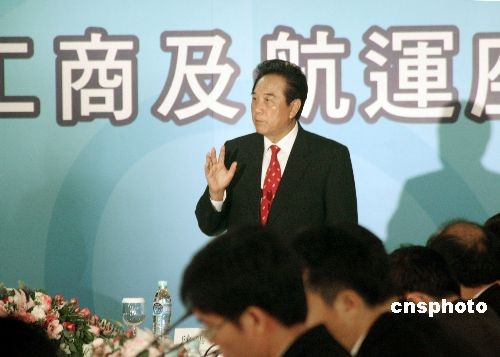 11月5日,海協(xié)會與;鶗谂_北舉行“兩岸工商及航運(yùn)座談會”。海協(xié)會會長陳云林表示,兩岸兩會4日簽署的空運(yùn)、海運(yùn)和郵政協(xié)議,一定會對兩岸共度時艱,有非常好的正面作用。中新社發(fā) 黃少華 攝