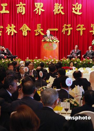 11月6日,臺灣工商界在臺北圓山飯店設(shè)午宴歡迎海協(xié)會會長陳云林一行。臺灣工商界人士稱贊此次簽署的四項協(xié)議,幾乎每一件都關(guān)系工商業(yè)界的發(fā)展。從中小企業(yè)到大企業(yè),從傳統(tǒng)產(chǎn)業(yè)到高科技產(chǎn)業(yè),兩岸工商界交流朝著良性、全面性發(fā)展。中新社發(fā) 黃少華 攝