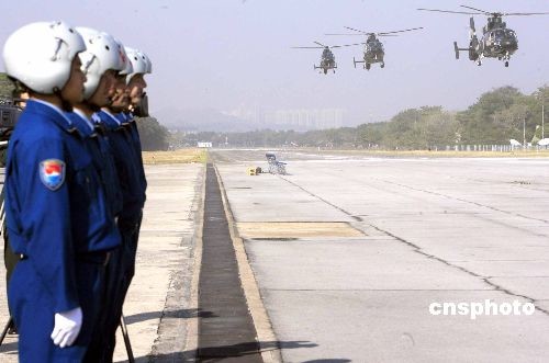 上午九時(shí)五十五分,由六架直九-B型直升機(jī)組成的空軍編隊(duì),降落在駐軍石崗機(jī)場,接替即將輪換出港的空軍直升機(jī)編隊(duì)。