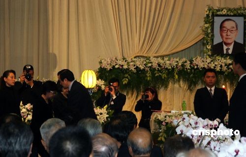 圖為馬英九到場(chǎng)發(fā)表追思感言后慰問孔德成先生家屬。