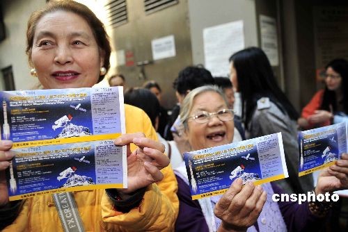 十二月二日早上九時,神舟七號航天代表團的大匯演門票在香港二十一個地點免費派發(fā),每人限取兩張。中新社發(fā) 譚達明 攝