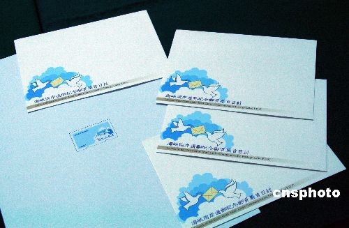 12月15日,臺灣“中華郵政”發(fā)行海峽兩岸通郵紀(jì)念郵票和首日封。郵票圖案以和平鴿送信為主圖,背景襯以藍(lán)天白云,象征兩岸“為民興利、兩岸和平”的共同目標(biāo)。中新社發(fā) 周兆軍 攝