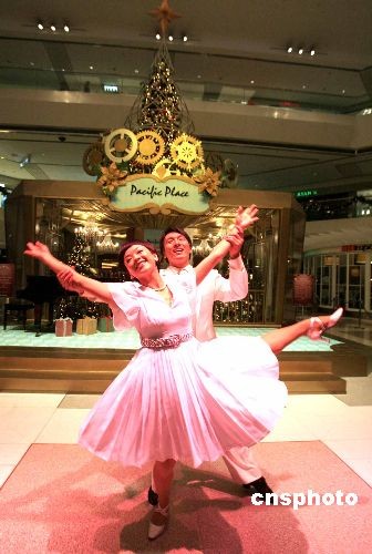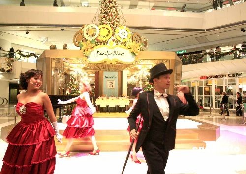 圖:香港商場“百老匯歌舞表演”營造圣誕氣氛