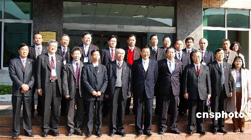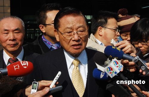 一月九日上午,海協(xié)會(huì)與;鶗(huì)聯(lián)合參訪團(tuán)在廣州考察一家臺(tái)資企業(yè)?疾旖Y(jié)束后,臺(tái)灣;鶗(huì)董事長江丙坤接受兩岸記者聯(lián)合采訪。中新社發(fā) 柯小軍 攝