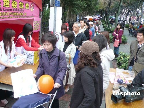 2月6日,元宵節(jié)將至,臺北市向市民免費發(fā)放元宵節(jié)小提燈。市民只要捐兩張發(fā)票,就可獲得一組牛年小提燈,民眾踴躍領取,排隊長達數百米。中新社發(fā) 路梅 攝